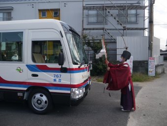 2021年10月08日(金) 路線バス 乗合バス新車1両納車! 本日、山北八幡神社にて、交通安全のお祓いをしてもらいました767号です これから皆様の生活の足として、瀬戸大橋線をメインに走ります よろしくお願いします