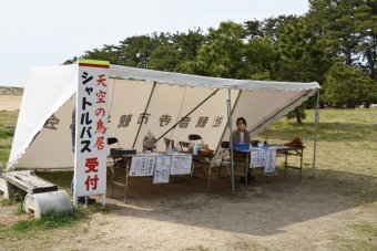 2. 天空の鳥居までは有明グランドより出発する「天空の鳥居行きシャトルバス」