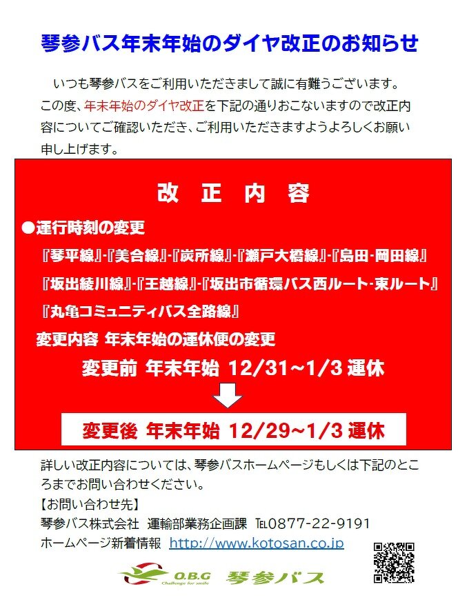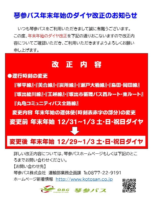 いつも琴参バスをご利用いただきまして誠に有難うございます。